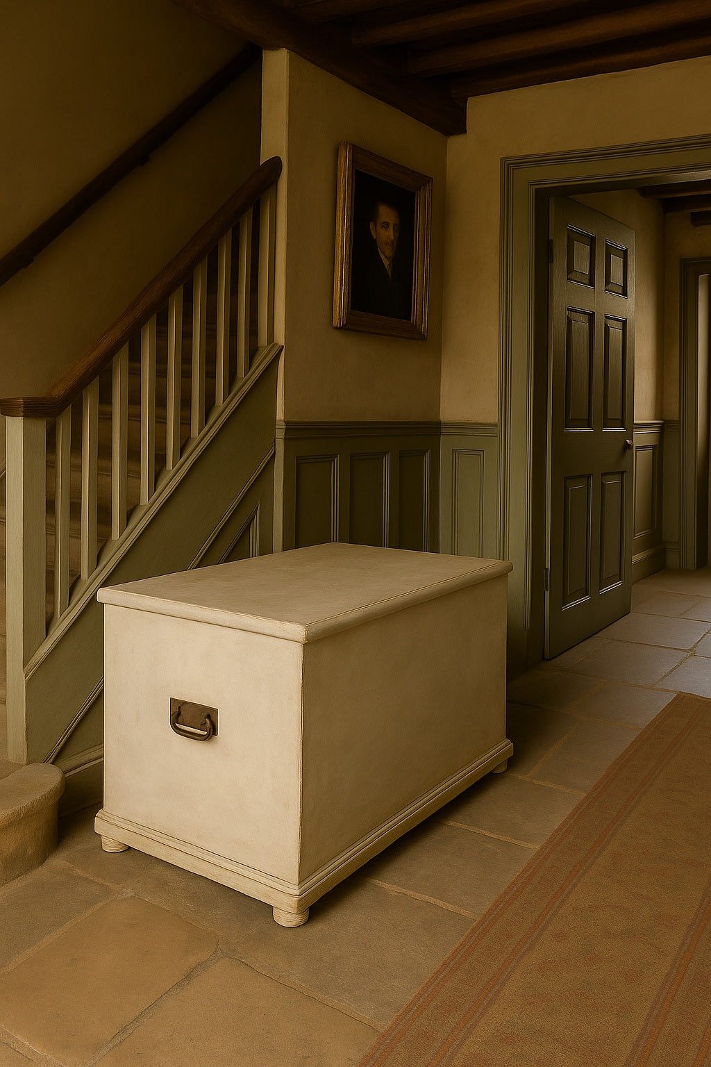 19th-Century Painted Pine Trunk – Large English Storage Chest