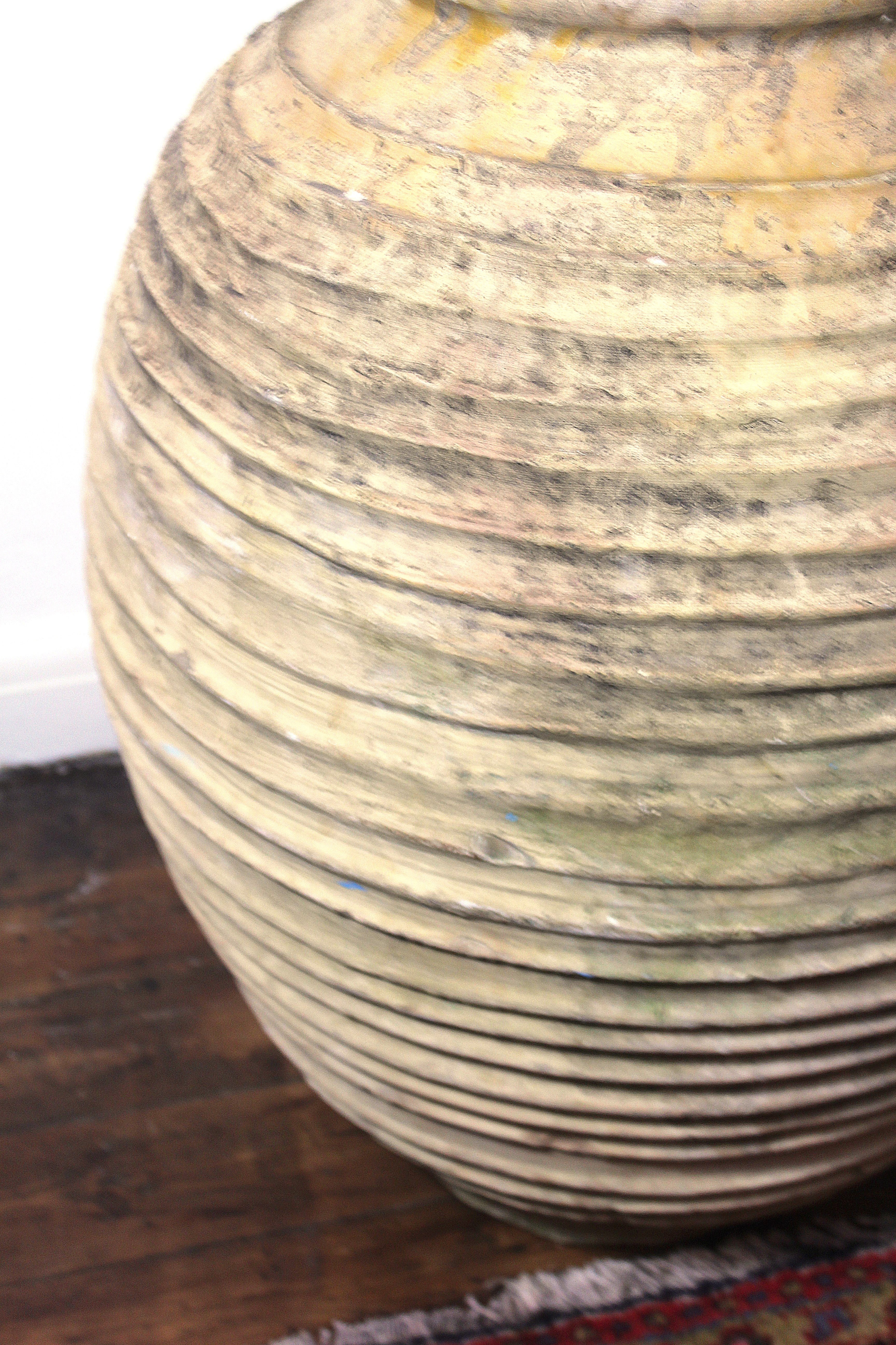 This large Greek olive oil pot offers more than just historical charm—it provides versatility as a decorative item. Whether placed in a garden, displayed in a rustic kitchen, or used as a standalone art piece, its distinctive beehive ribbed design enhances any setting. Its warm, earthy tones and traditional craftsmanship capture the essence of 19th-century Greek pottery, bringing a piece of history into modern spaces.