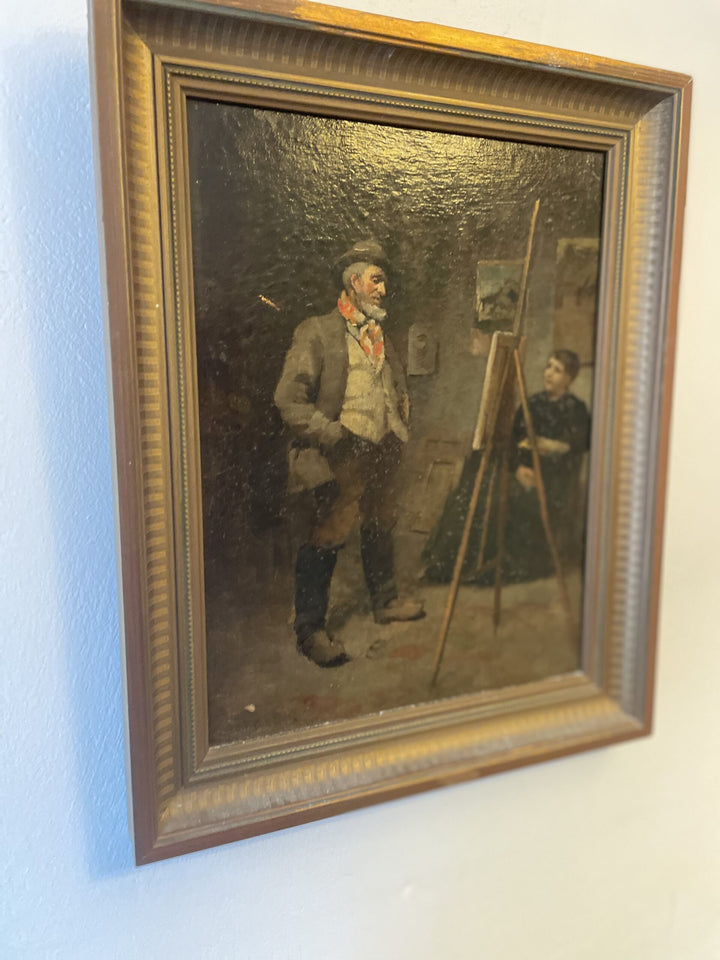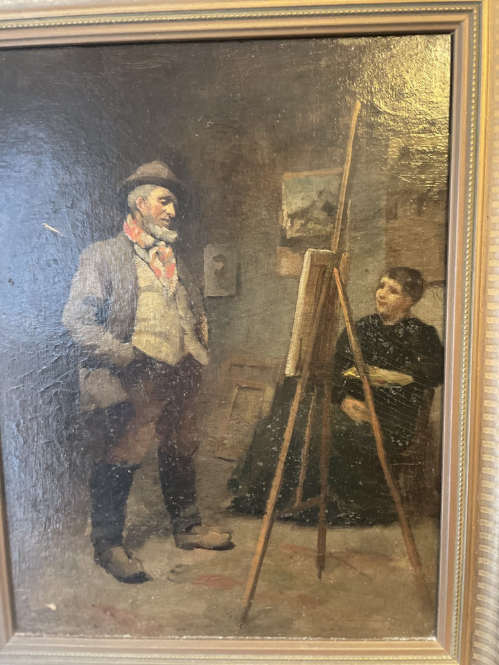 Secure & Insured Delivery – Free UK Shipping: Antique oil painting: 19th century painting interior artist studio