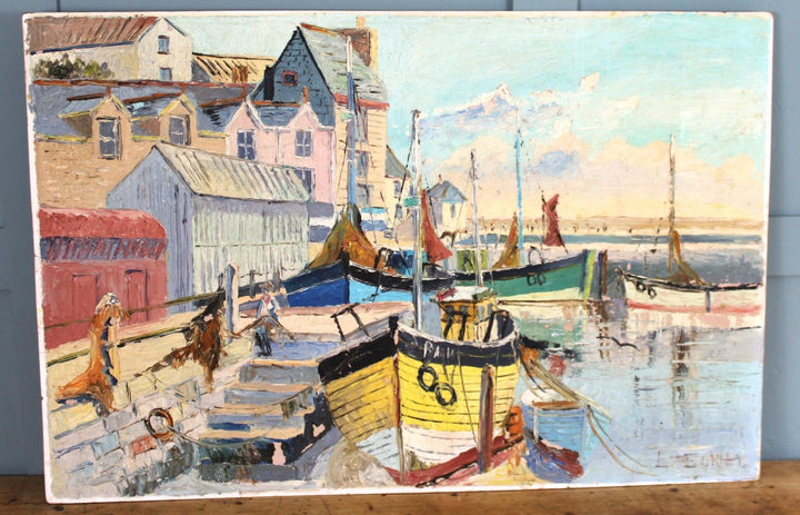 Fabulous Midcentury South of France Mediterranean Harbour Scene – South Of France Mediterranean Oil Painting