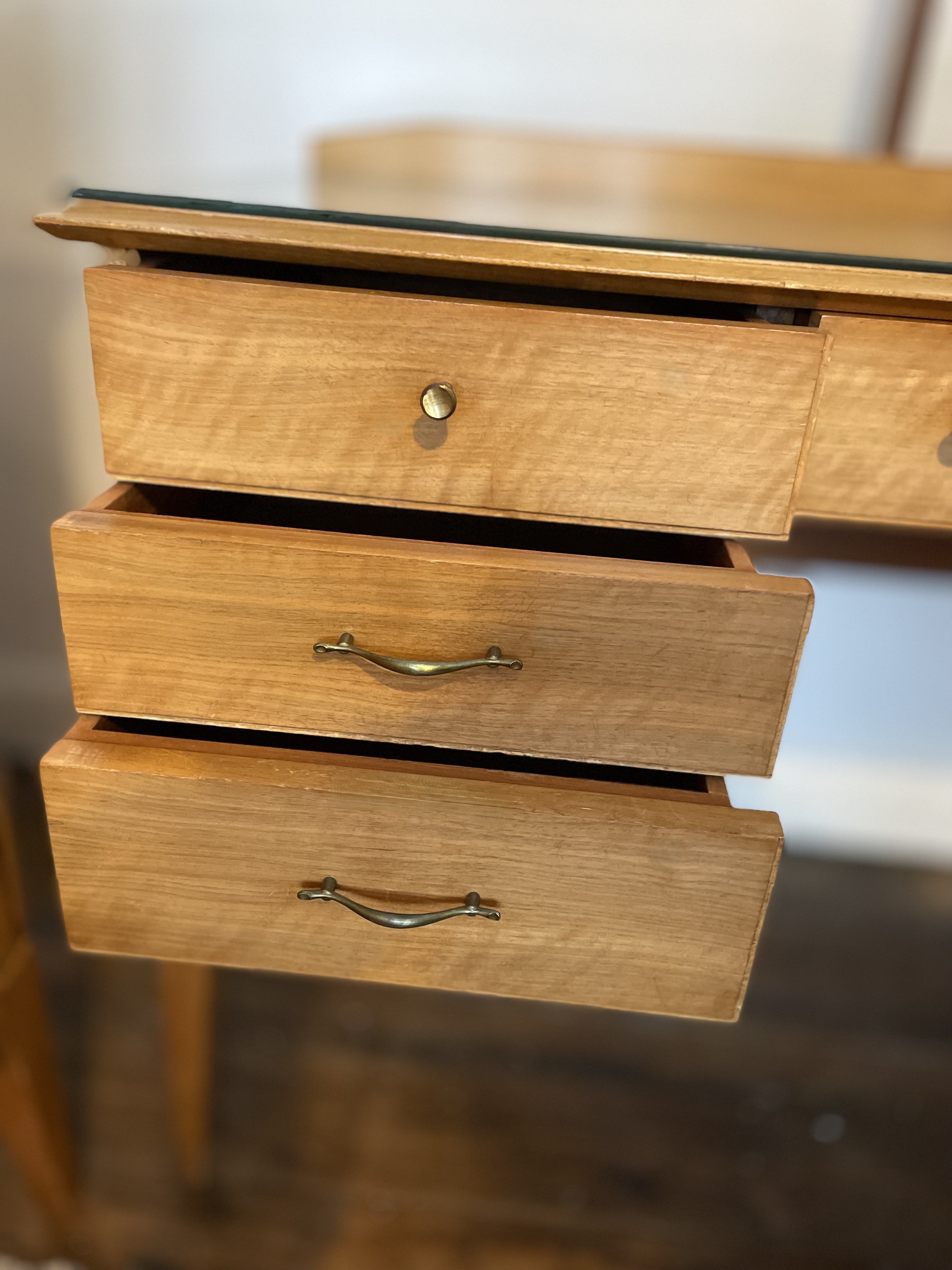 This dressing table comes with a wonderful provenance. It was acquired from an elderly couple in Brighton who purchased the full Alfred Cox suite—including the wardrobe and chest—from Heal’s on Tottenham Court Road in London during the early 1960s. It was their first home together, and they took great pride in selecting quality British furniture that would last a lifetime. The dressing table remained in their Brighton home ever since, lovingly maintained and cherished for over six decades.