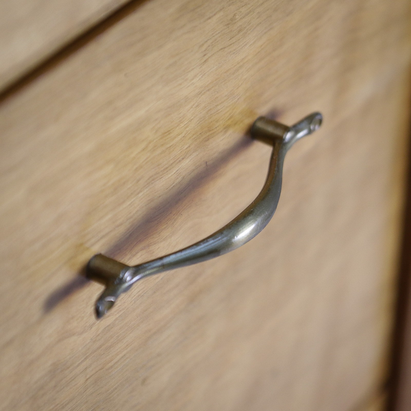 The design is both refined and practical: featuring a large central drawer, four smaller side drawers, and a concealed full-width bottom drawer—ideal for discreet storage. Each drawer is finished with Cox’s signature sculpted handles, while the large tilting mirror, crowned with a gentle curved top, adds a graceful focal point to the piece.