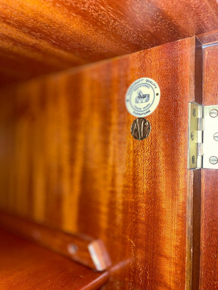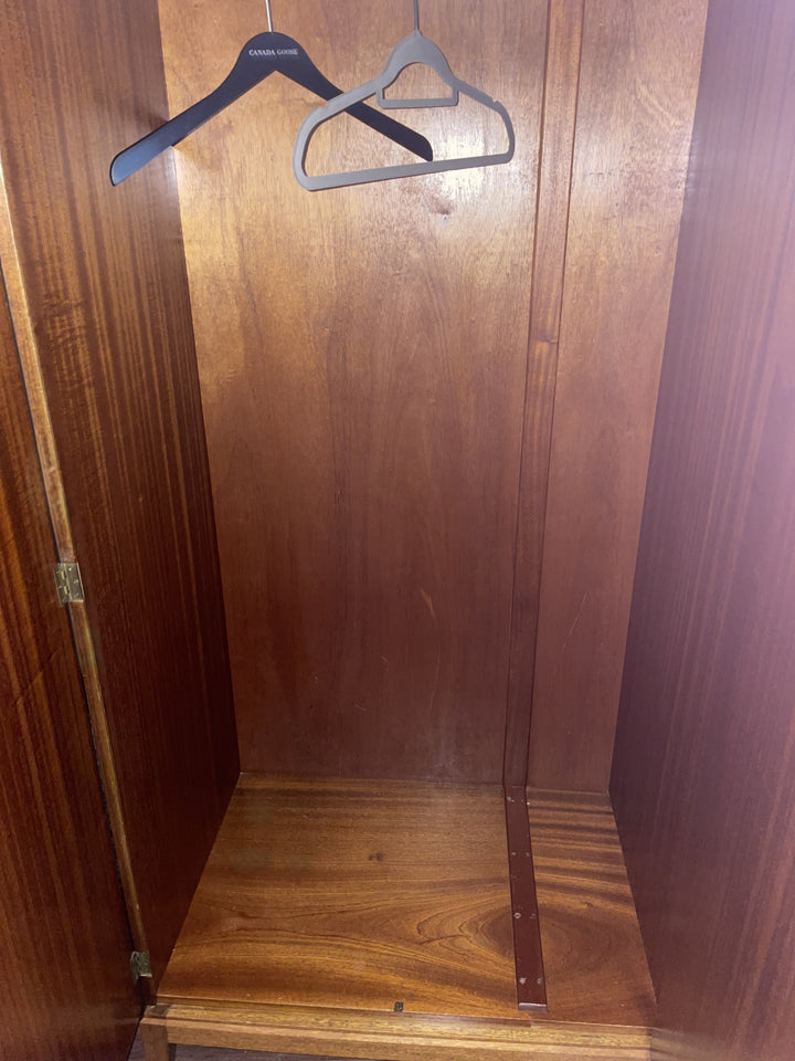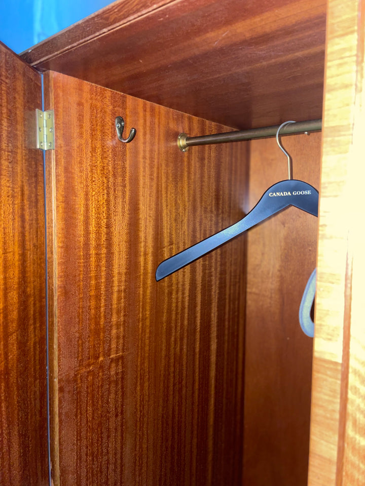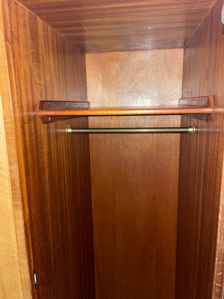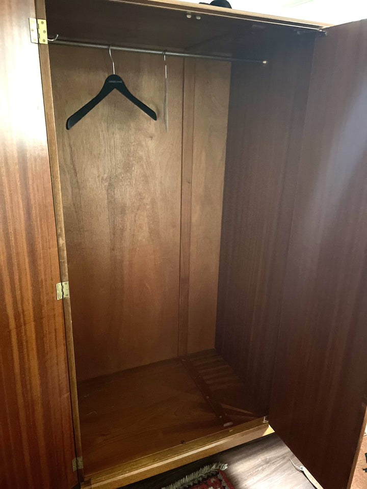 We sourced this elegant Alfred Cox bedroom set from a delightful elderly couple in Brighton, who had owned it since new. They recalled purchasing the full suite—wardrobe, dressing table, and chest of drawers—directly from Heal’s on Tottenham Court Road in the early 1960s, just after they got married. It was their first major investment in furniture, chosen for its quality craftsmanship and modern elegance.