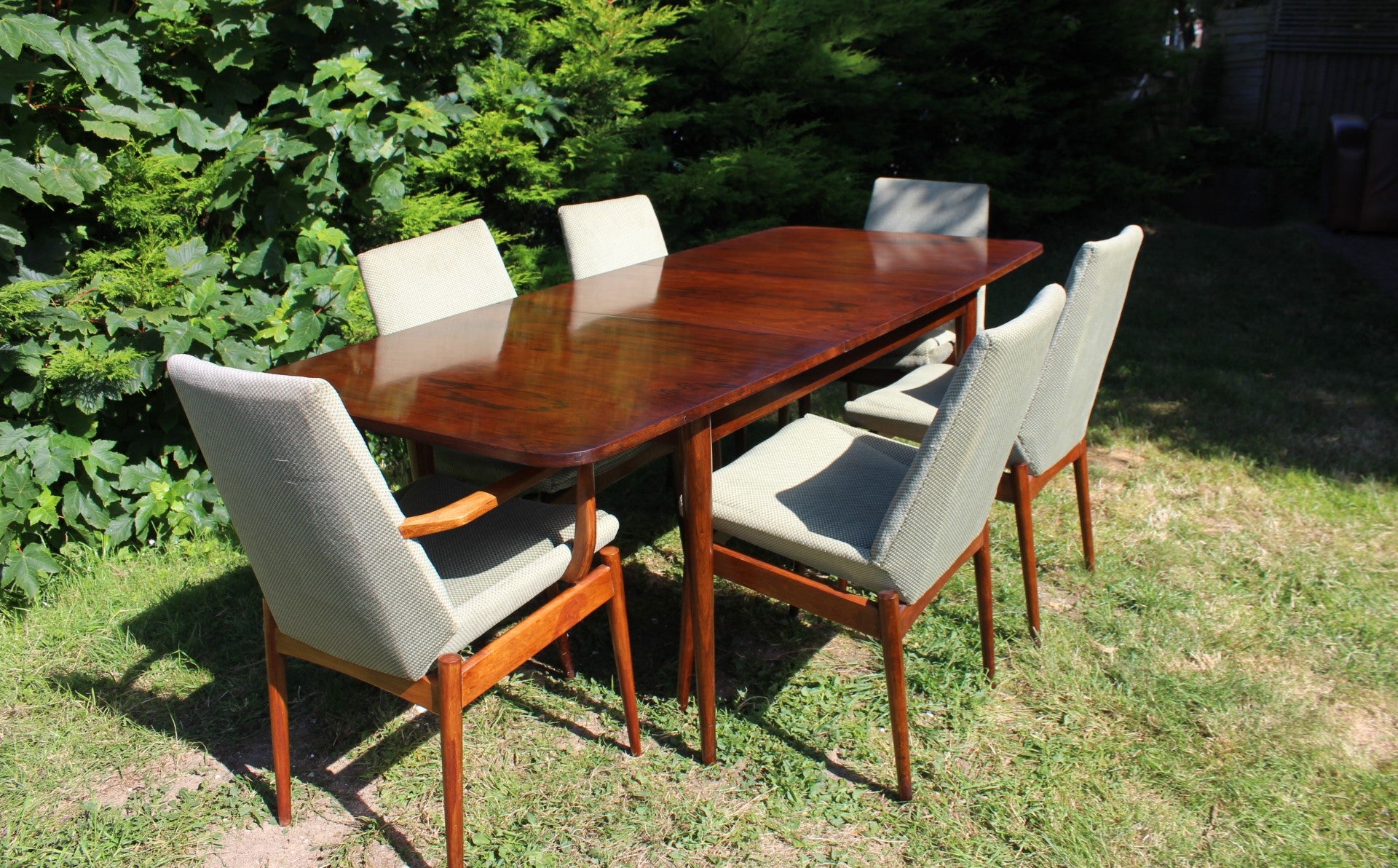 This beautiful Hamilton Dining Table comes from the home of a retired architect in Hampstead, London, who originally purchased the set new in the early 1960s after spotting it in Heal’s. He was drawn to its clean Danish-influenced lines and the rich, almost sculptural rosewood grain—details he felt echoed the modernist principles he admired in his own work.