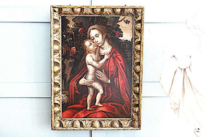Antique Hand-Carved Frame Old Master Madonna and Child artwork