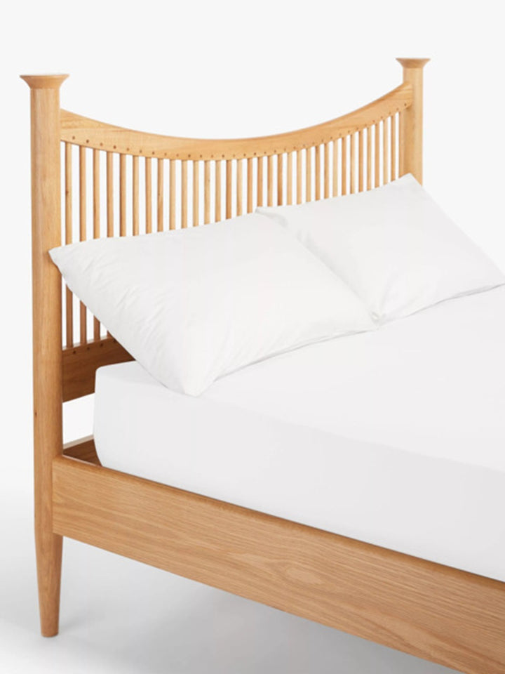 Crafted in a warm oak finish, the frame highlights the natural grain of the wood and offers a timeless, versatile look that works effortlessly in both contemporary and classic interiors. The open slatted base provides strong mattress support while maintaining a streamlined, airy profile.