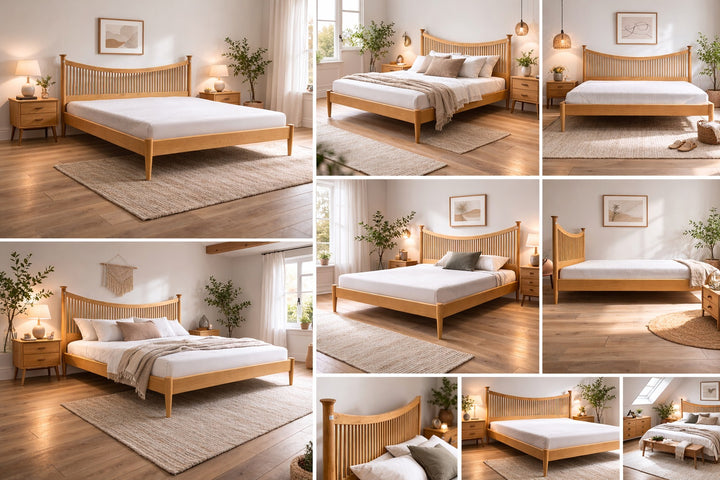 Mid-Century Inspired Solid Oak Bed Frame